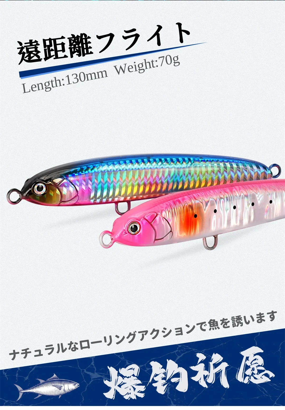 TSURINOYA 8 Uds. Señuelos de pesca con lápiz Stickbait que se hunden, 130mm, 70g, Wobbler, cebo duro Artificial para atún marino, señuelo de pesca en barco GT