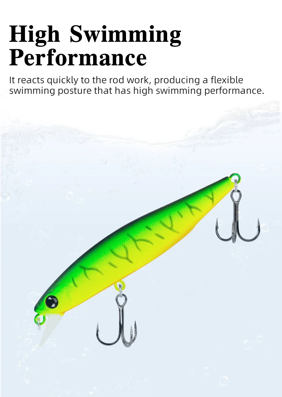 Reacciona rápidamente al trabajo de la caña, produciendo un rendimiento de natación flexible y excelente.