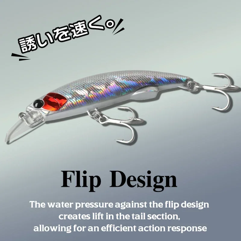 El cuerpo de 90 mm ha sido embalado con 40 g de peso.Incluso con los ajustes de peso pesado, el labio cortado biselado y la cola con diseño abatible crean elevación, lo que permite que el señuelo inicie la acción sin problemas mientras mantiene su equilibrio en la recuperación a alta velocidad.