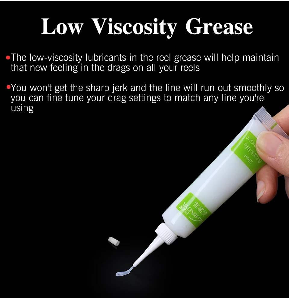 Los lubricantes de baja viscosidad en Reel Grease ayudarán a mantener esa nueva sensación en el arrastre en todos sus carretes.