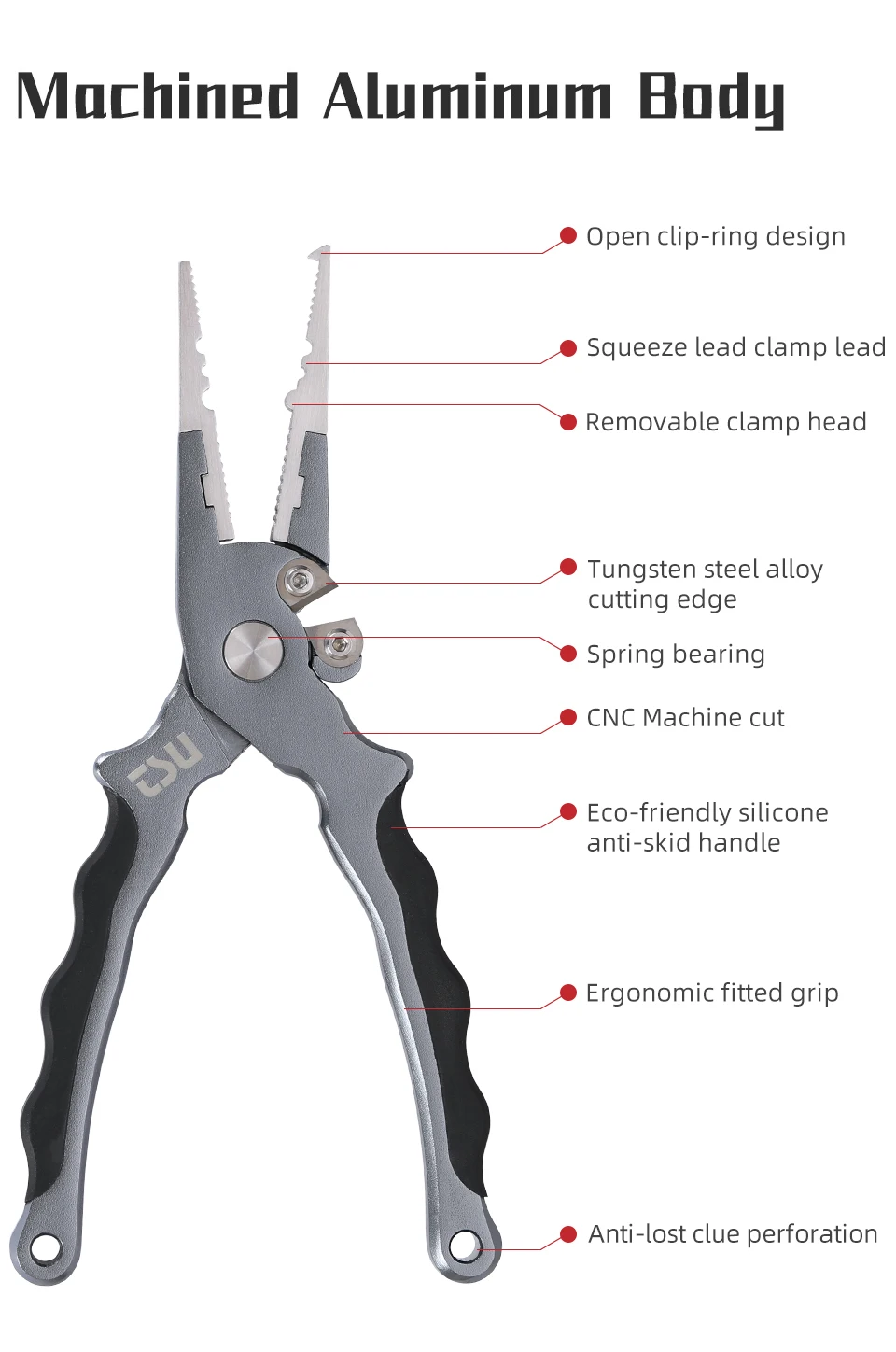 Alicates de pesca de aluminio TSURINOYA, cortadores trenzados de carburo de tungsteno, extractor de anzuelos, equipo de pesca resistente al agua salada