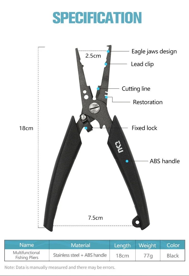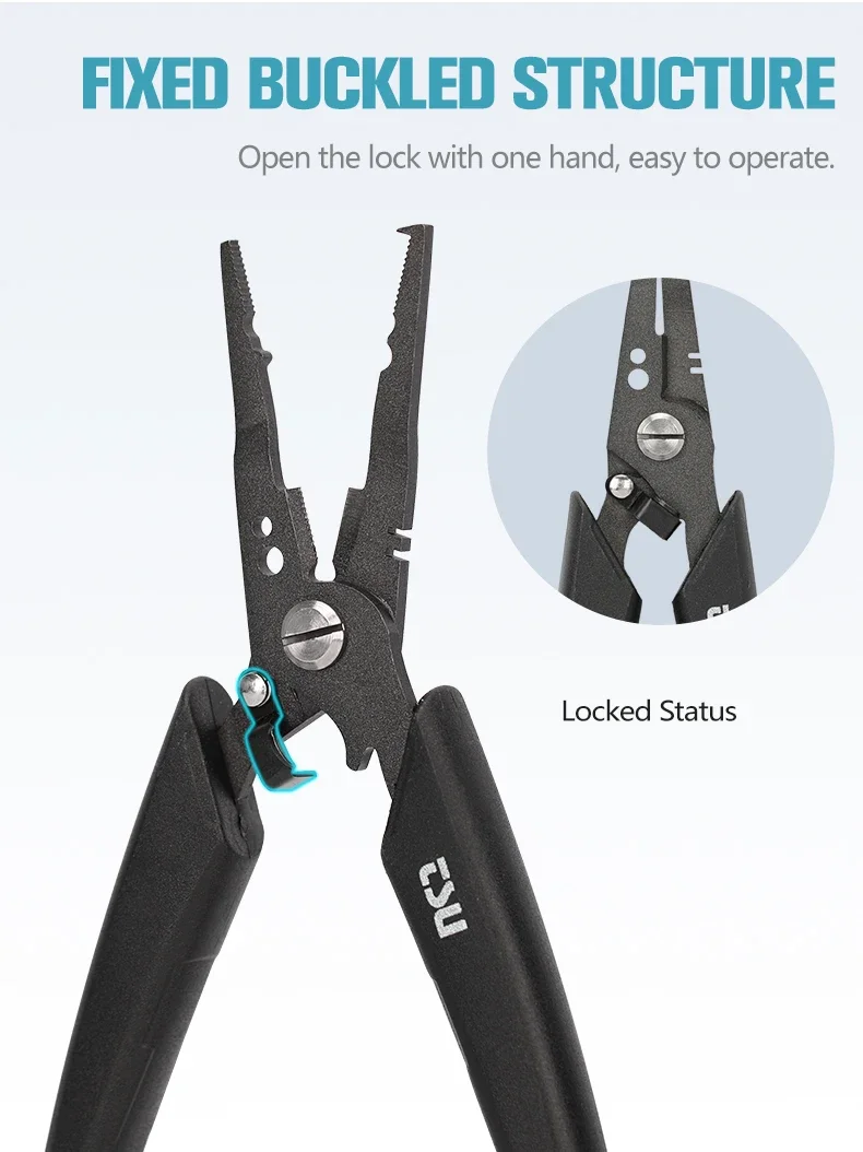 TSURINOYA-Alicates de pesca RS-1092, mango ABS de acero inoxidable, juego de luz multifuncional, cortador de trenzas, aparejos de tijeras