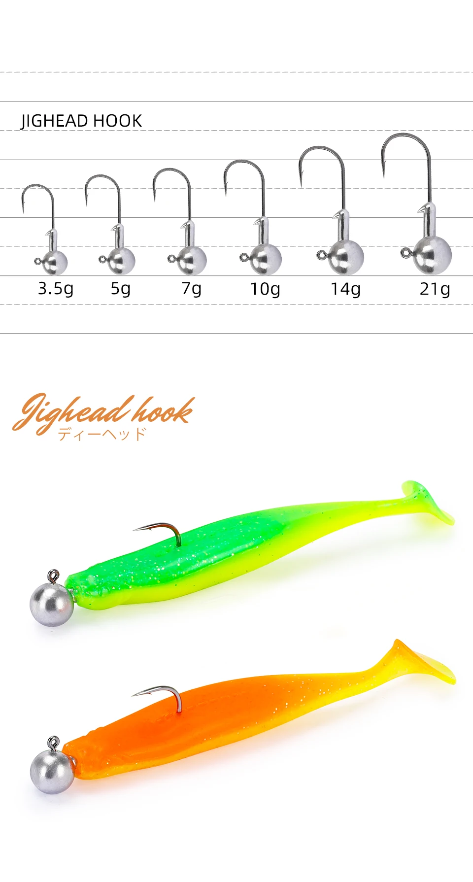 Anzuelo con cabeza de plomo TSURINOYA, 3,5g, 5G, 7g, 10g, 14g, 21g, anzuelo de pesca con cabeza de plantilla, anzuelos individuales, cebo suave, gusano, aparejos de pesca Jigging