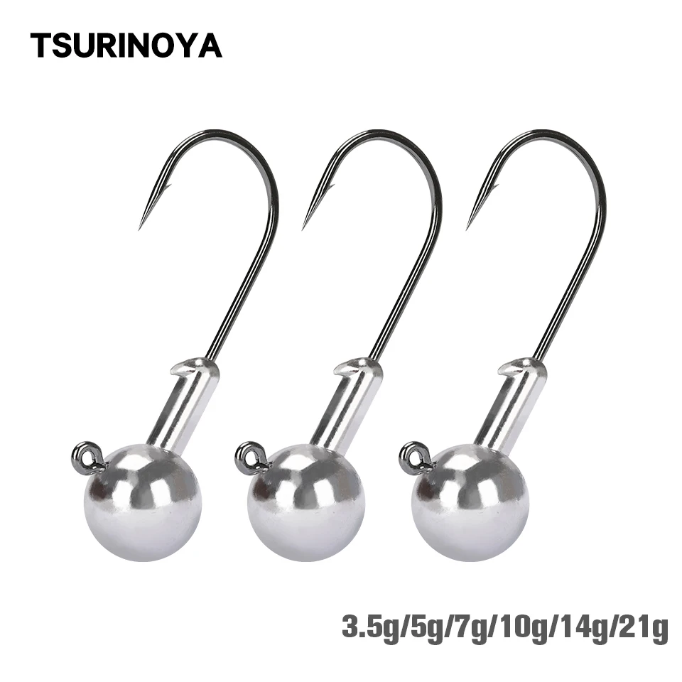 Anzuelo con cabeza de plomo TSURINOYA, 3,5g, 5G, 7g, 10g, 14g, 21g, anzuelo de pesca con cabeza de plantilla, anzuelos individuales, cebo suave, gusano, aparejos de pesca Jigging