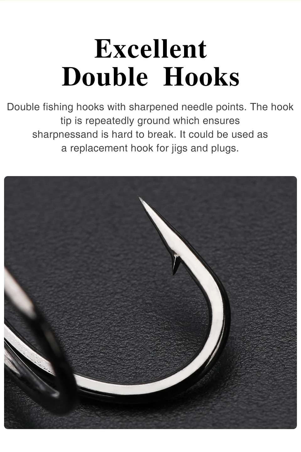 TSURINOYA-anzuelos dobles de rana, señuelo de pesca afilado, 4 #/5 #/#8, anzuelos de acero de alto carbono, 20 piezas/40 Uds.