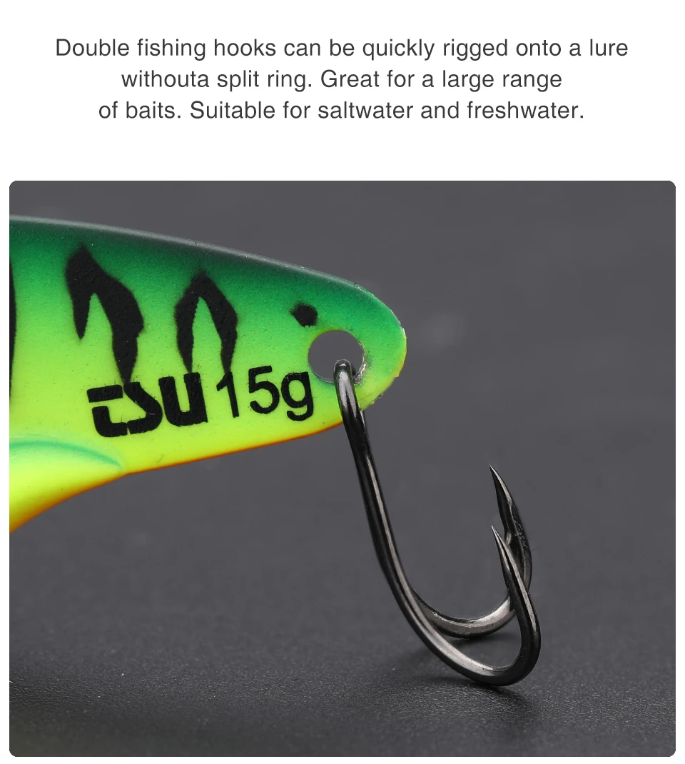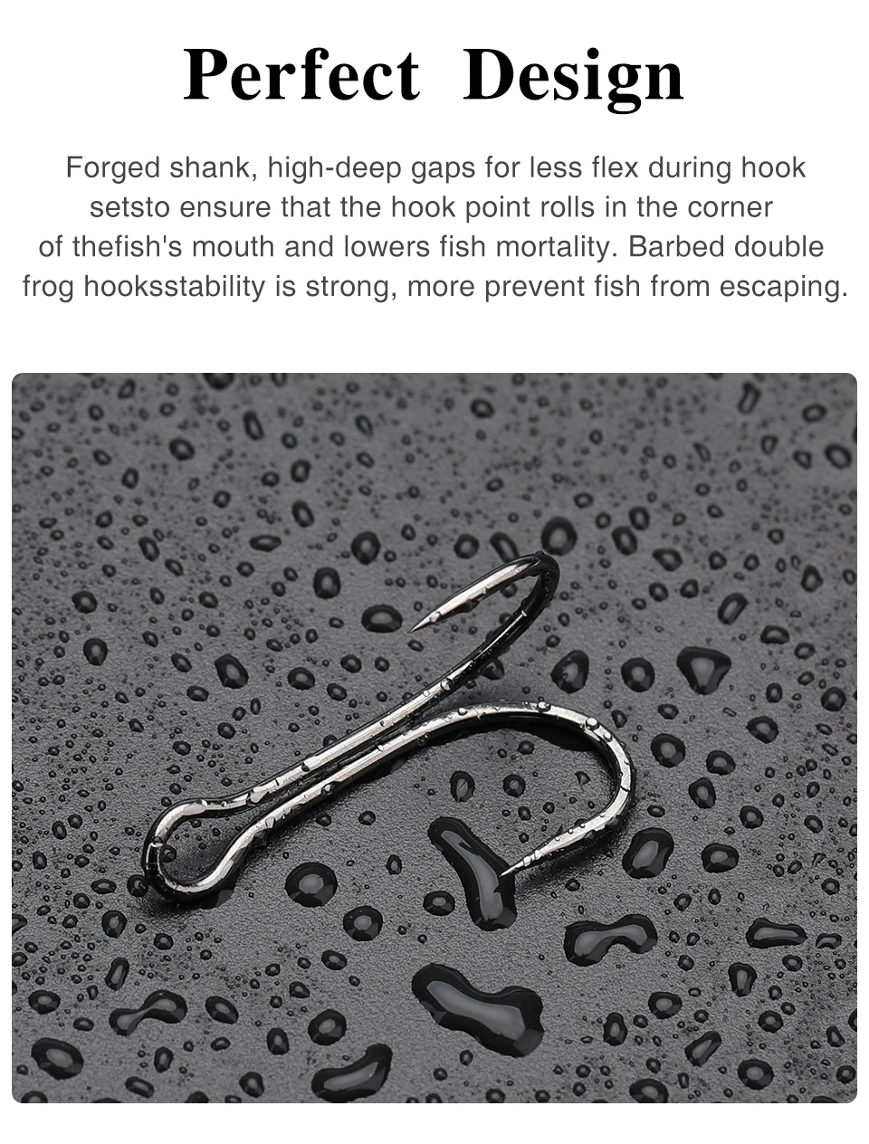 Ganchos dobles afilados, diseño de púas, sujeta firmemente el pez y no es fácil de desenganchar