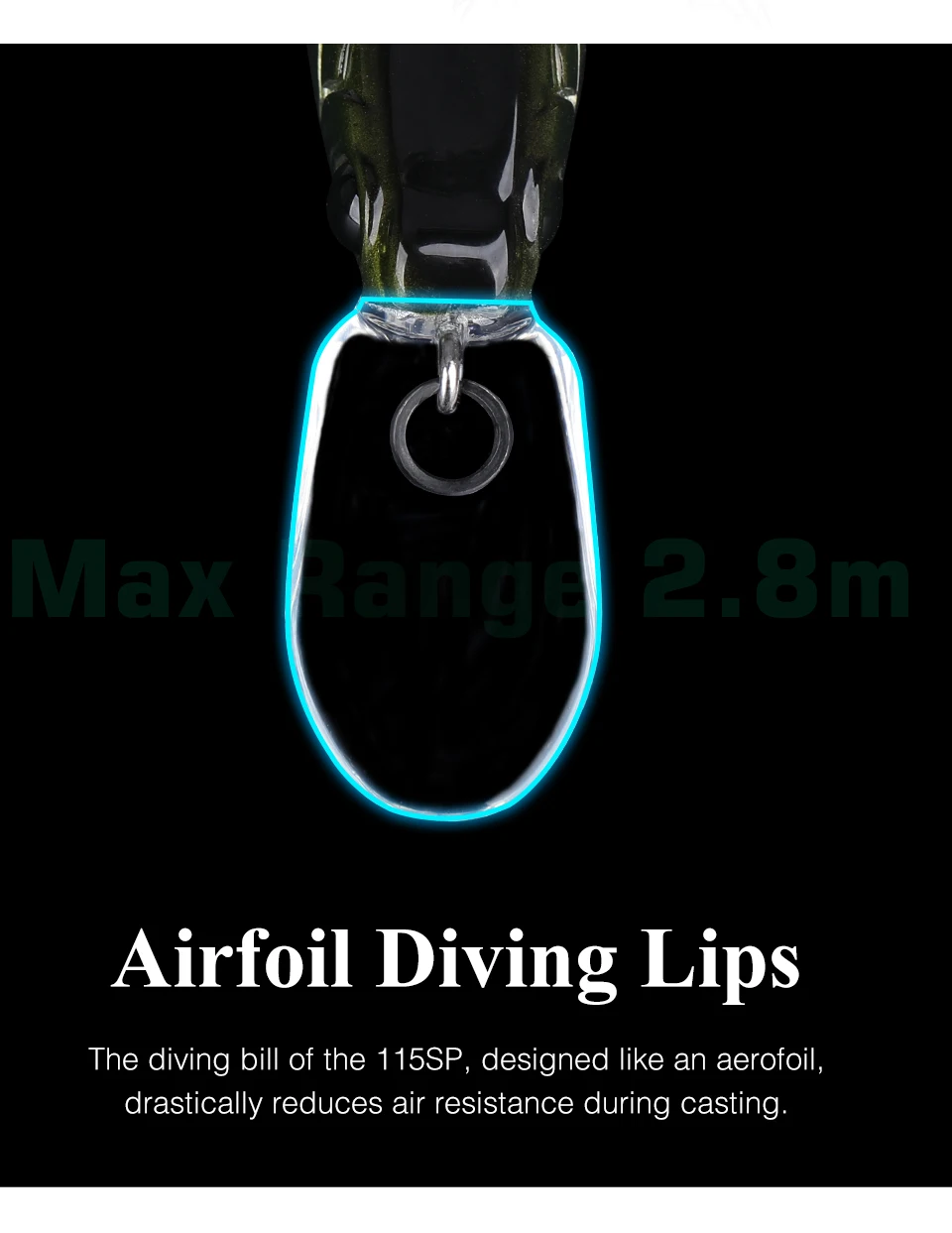 AURORA 115SP ofrece lo último en "movimiento similar al cebo", produciendo atractivas dinámicas y fuertes vibraciones.