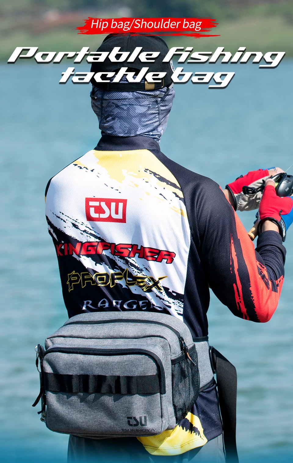 Bolsa multifuncional para aparejos de pesca TSURINOYA, bolso de hombro y bolsa de cadera para exteriores a prueba de salpicaduras de gran capacidad, paquete de almacenamiento deportivo