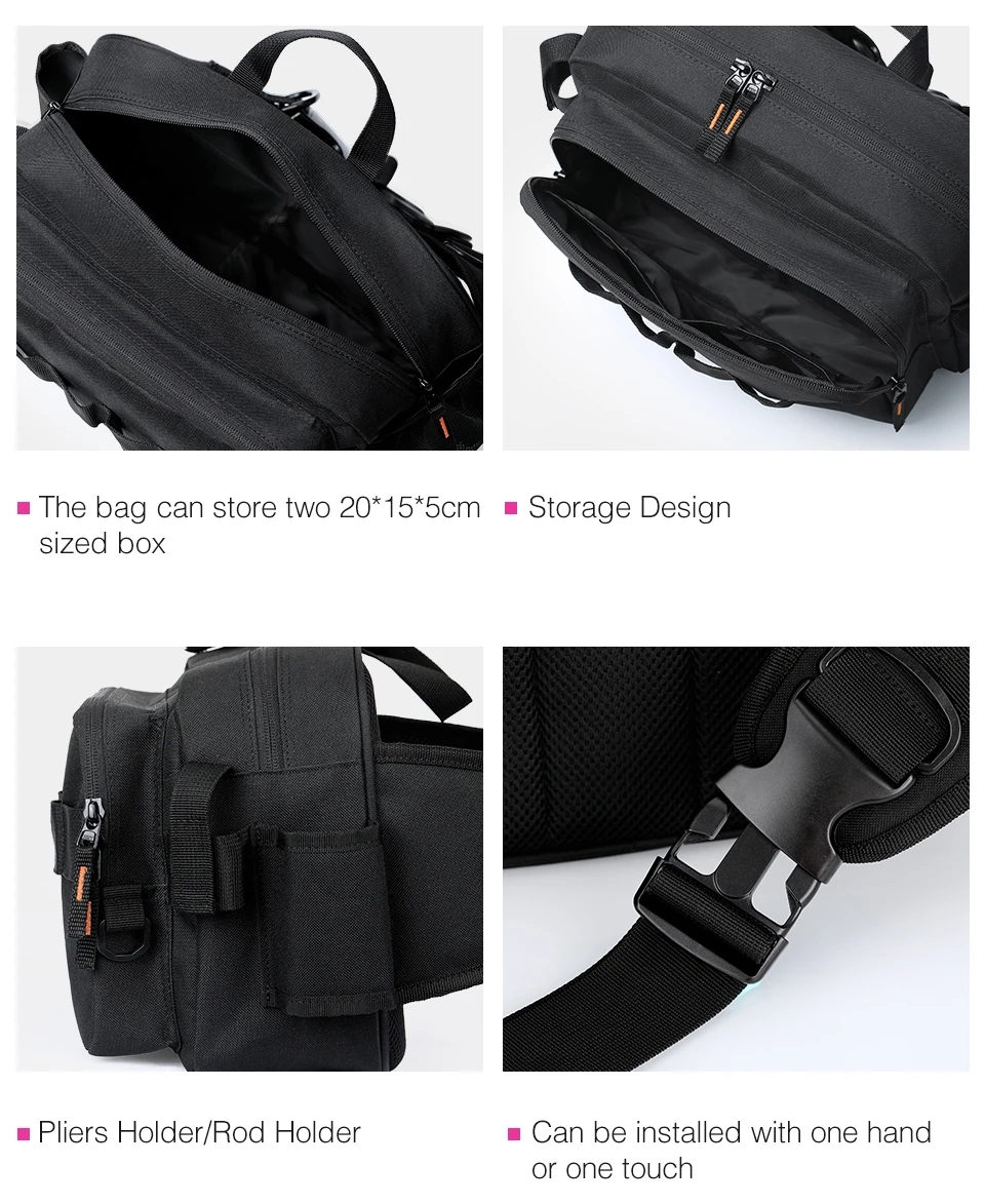 2. Gran capacidad de almacenamiento: La bolsa puede almacenar dos cajas de 20x15x5cm y dos cajas de 20x13x4cm.