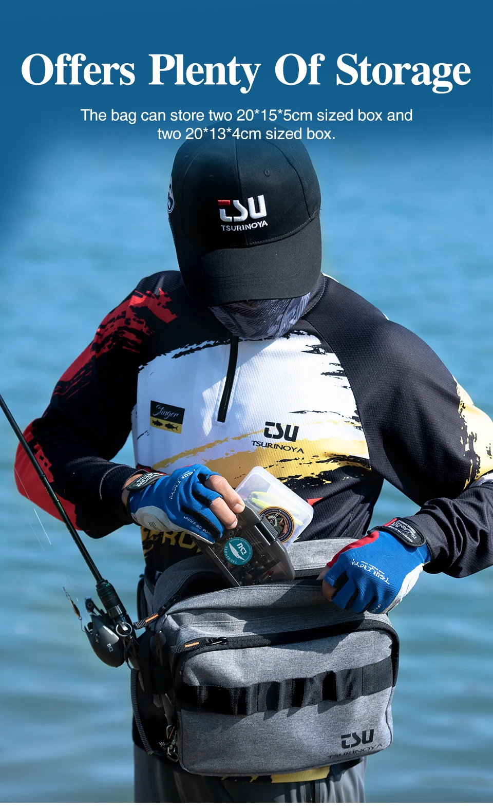 Bolsa de aparejos de pesca portátil multifuncional TSURINOYA bolsa de cadera de alta capacidad Paquete de cebos de pescado bolsa de hombro de almacenamiento de utilidad