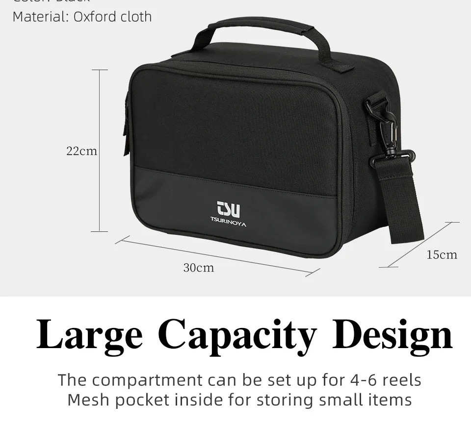 TSURINOYA-bolsa de carretes de pesca multifuncional, resistente al agua, compartimentos divisoria extraíbles, contenedor de carretes de almacenamiento