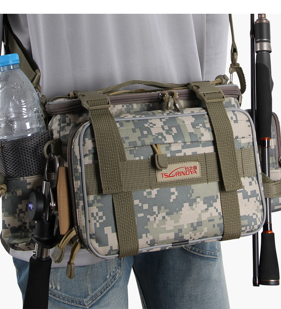 TSURINOYA-Bolsa de pesca multifunción Y7, 19x15x40cm, aparejos de pesca de alta capacidad, bolso de hombro, riñonera de lona