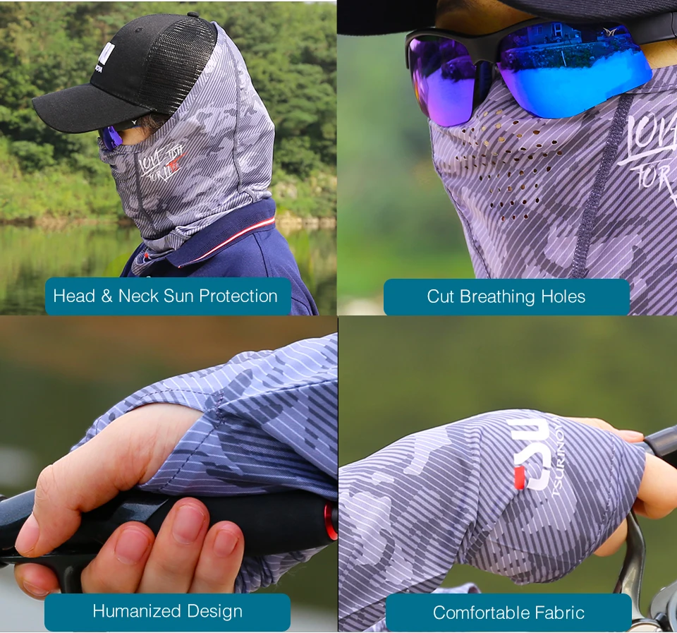 TSURINOYA cabeza cuello brazo Protector solar pesca deporte ciclismo Protector solar manguito cubierta protectores faciales brazo protector manga larga
