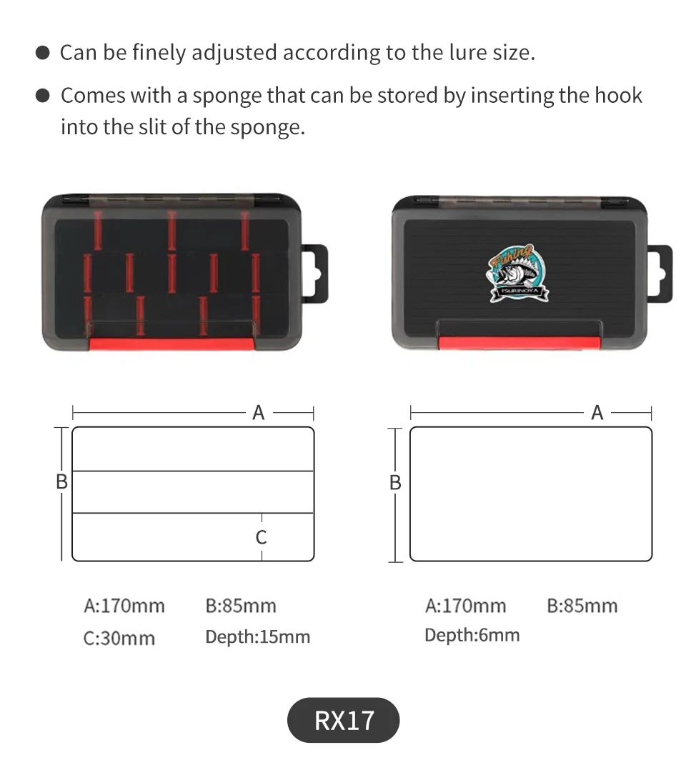 TSURINOYA-caja de señuelos de pesca RX17, cajas de herramientas de pesca, aparejos de Texas, ganchos de plataforma Jika, almacenamiento, cajas de utilidad de doble capa