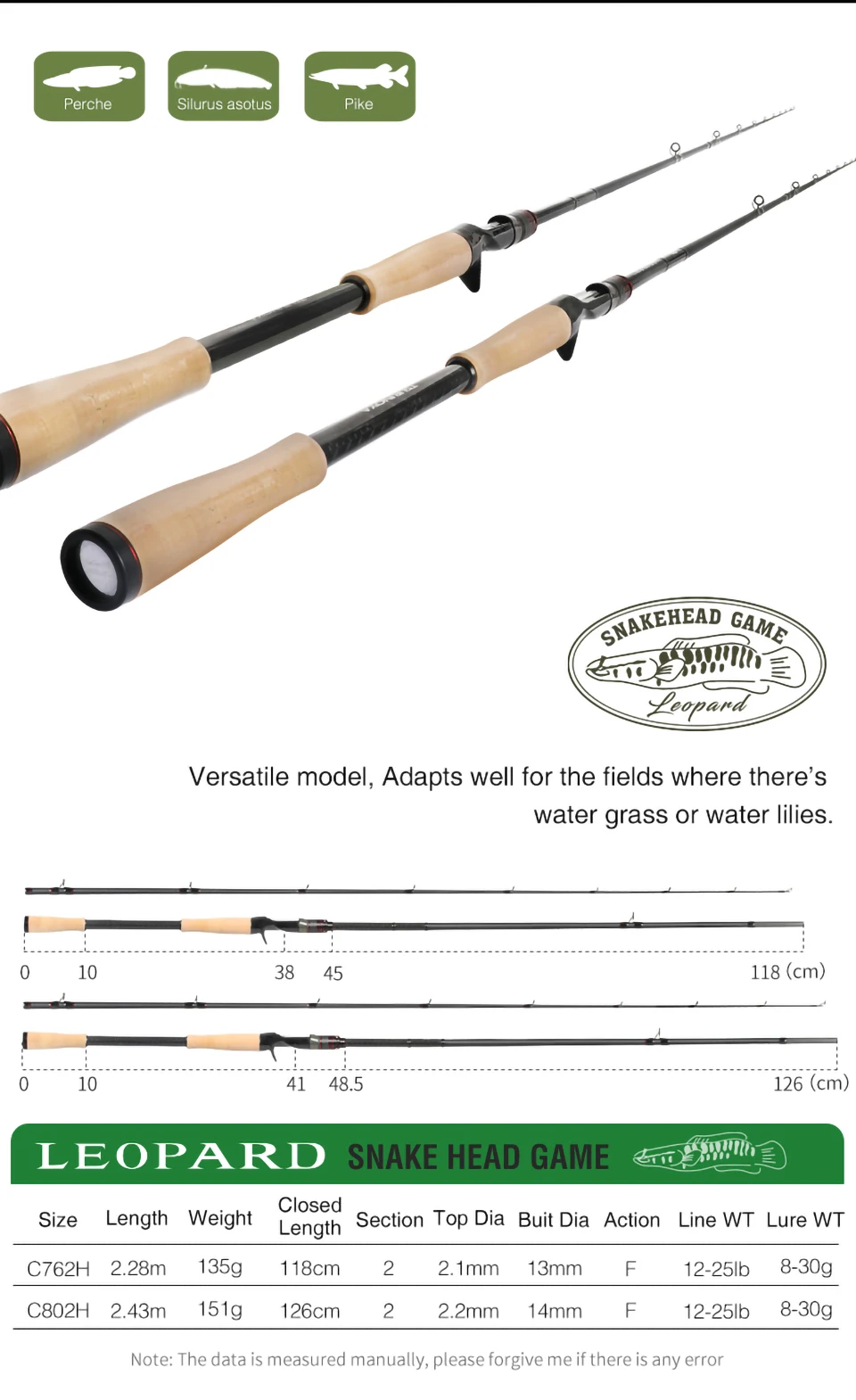 TSURINOYA-caña de juego de cabeza de serpiente de leopardo, señuelo ultraligero de 2,28/2,43 m, FUJI Guides, Catfish, Lucio, WT.8-30g