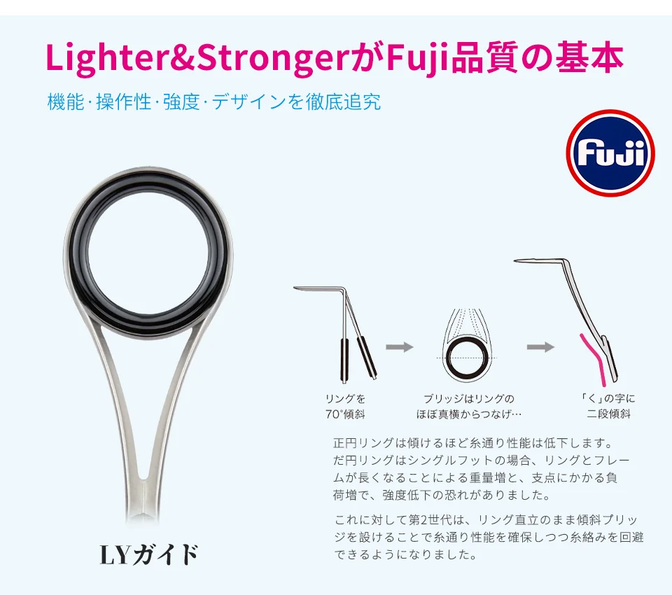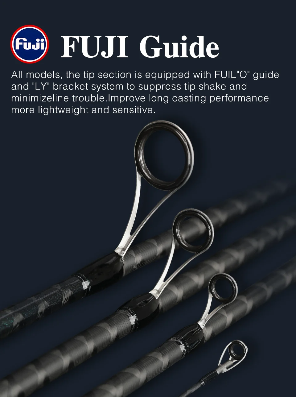 1. Guía FUJI, todos los modelos, la sección de la punta está equipada con una guía FUIL "O" y un sistema de soporte "K" para suprimir el movimiento de la punta y minimizar los problemas de línea. Mejora el rendimiento de fundición larga, más ligero y sensible