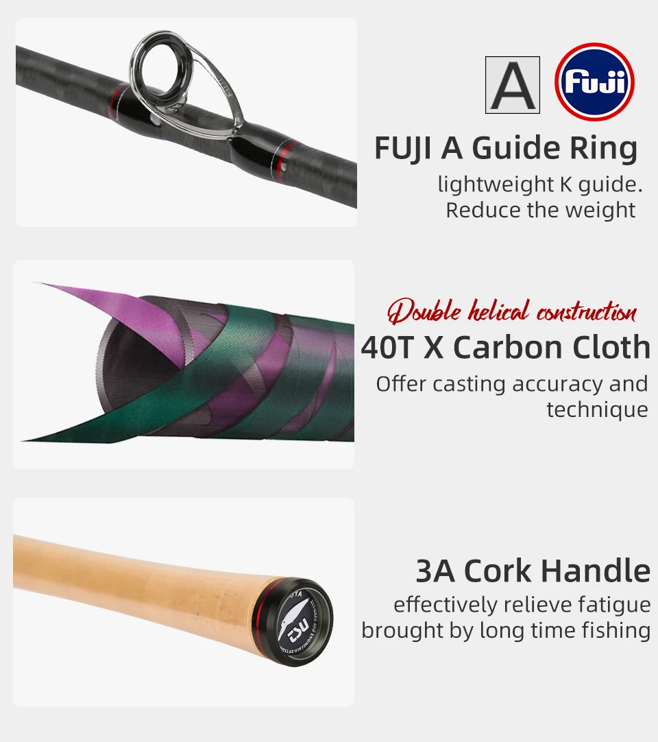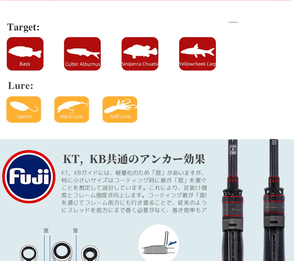 TSURINOYA caña de pescar ELITE III 1,95 m 2,03 m 2,09 m 2,13 m luz media accesorios de guía FUJI caña de señuelo de bajo de carbono giratoria de fundición
