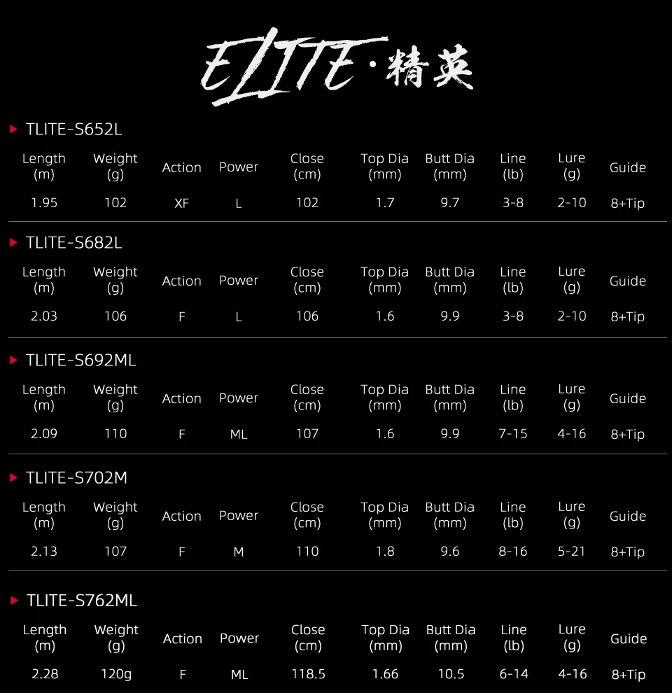 Las varillas ELITE están fabricadas con un tejido de carbono japonés de 30 toneladas de alta calidad y ofrecen un cono refinado. Al ofrecer una sensibilidad avanzada que garantiza que no haya mordida sin respuesta, las varillas cuentan con asientos de carrete FUJI que transfiere energía cinética directamente a la palma para una máxima capacidad de respuesta. De extremo a extremo, las varillas utilizan los mejores componentes, incluidas las guías Fuji k-frame con insertos de alconita que funcionan para aumentar la distancia de fundición y la precisión.