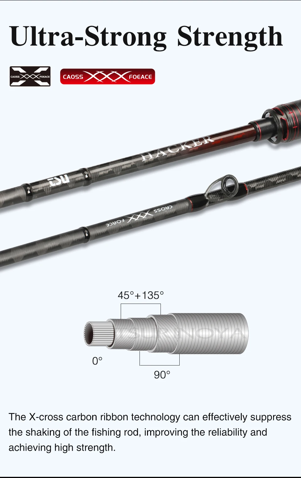 Tela de carbono X-cross sin pulir, mientras mantiene la fuerza de la caña de pescar, está equipado con el anillo guía FUJI y el asiento del carrete para lograr un peso ligero, alta sensibilidad y sensibilidad. Además, el centro de gravedad de la varilla está cerca de la mano para garantizar el peso ligero y el equilibrio de la varilla, y también puede tener una mejor operatividad, distancia de lanzamiento y fuerza al suprimir el temblor.