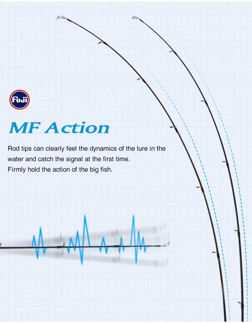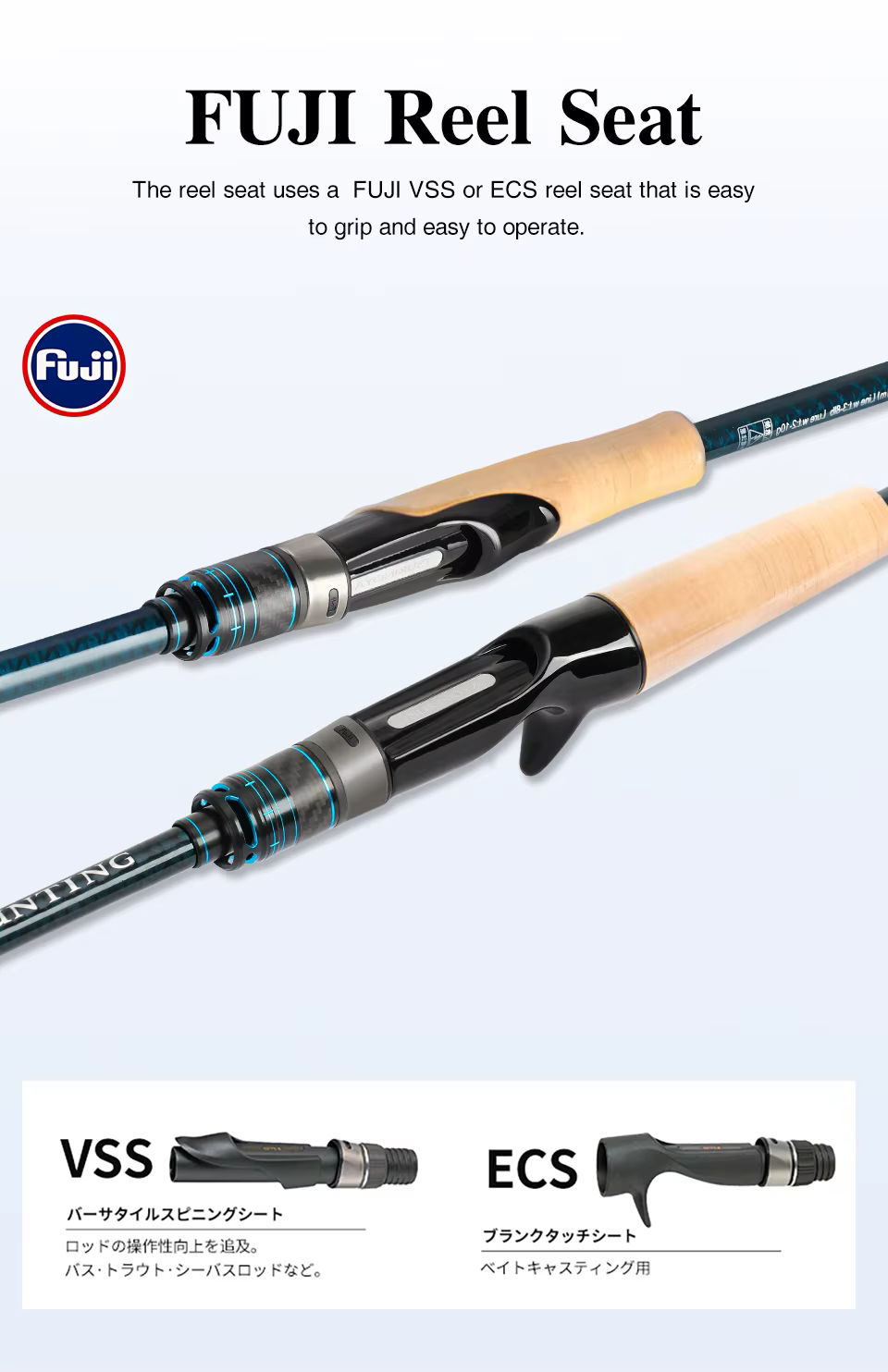 Equipado con anillo guía FUJI O, mejora el rendimiento de lanzamiento prolongado, más liviano y sensible