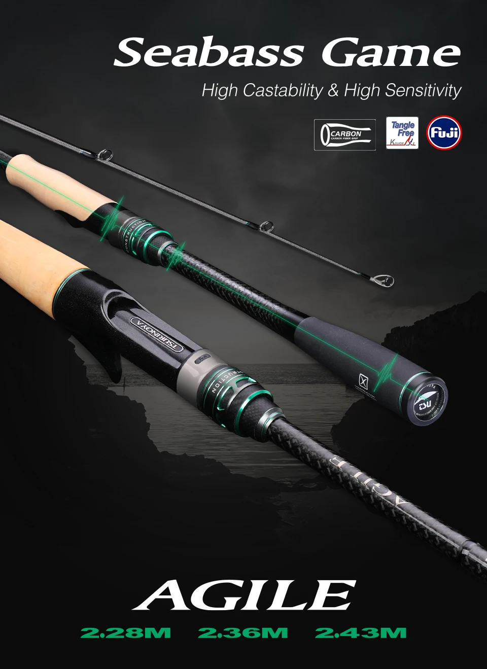 AGILE consideramos completamente el juego de lubina, por lo que hemos logrado una variedad de características de rendimiento: alta lanzamiento para golpear los puntos y alta sensibilidad que transmite claramente el estado del señuelo en el agua, lo que permite a los pescadores realizar cambios instantáneos.La suave curva de flexión evita enganches y evita golpes.El equilibrio de la caña es una de las características principales de esta caña, para permitir apuntar y capturar lubinas manteniendo una alta concentración y disminuyendo la fatiga.