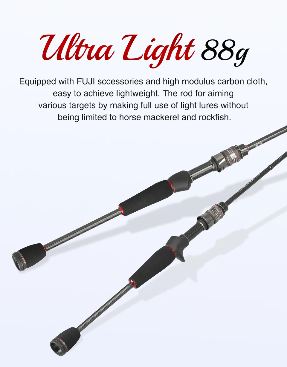1.Equipado con accesorios FUJI y tela de carbono de alto módulo, fácil de lograr un peso ligero.La caña para apuntar a varios objetivos aprovechando al máximo señuelos ligeros sin limitarse a caballa y pez roca.