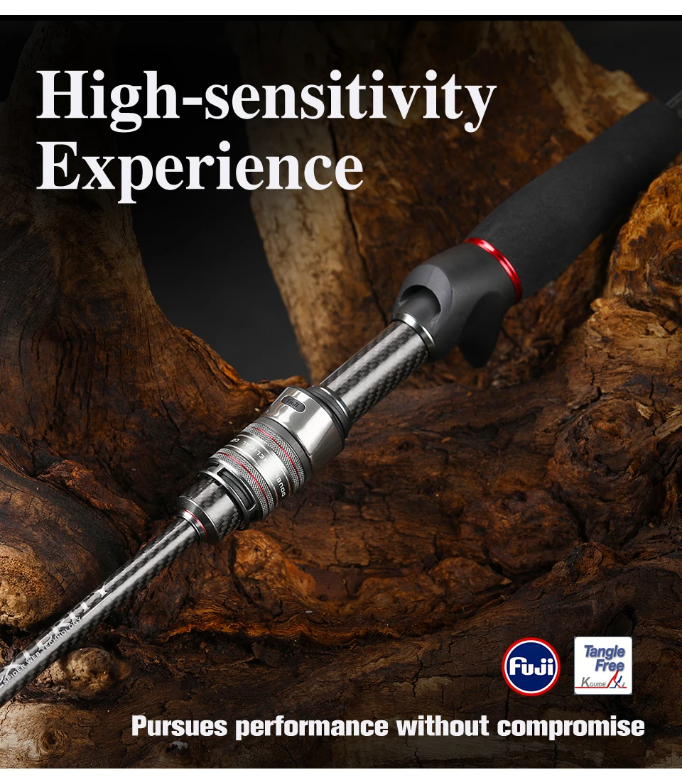 3.La varilla utiliza tela de carbono de alta sensibilidad para dibujar una hermosa curva y al mismo tiempo lograr una sensibilidad más sobresaliente, haciendo que los cambios en el agua sean más claros.