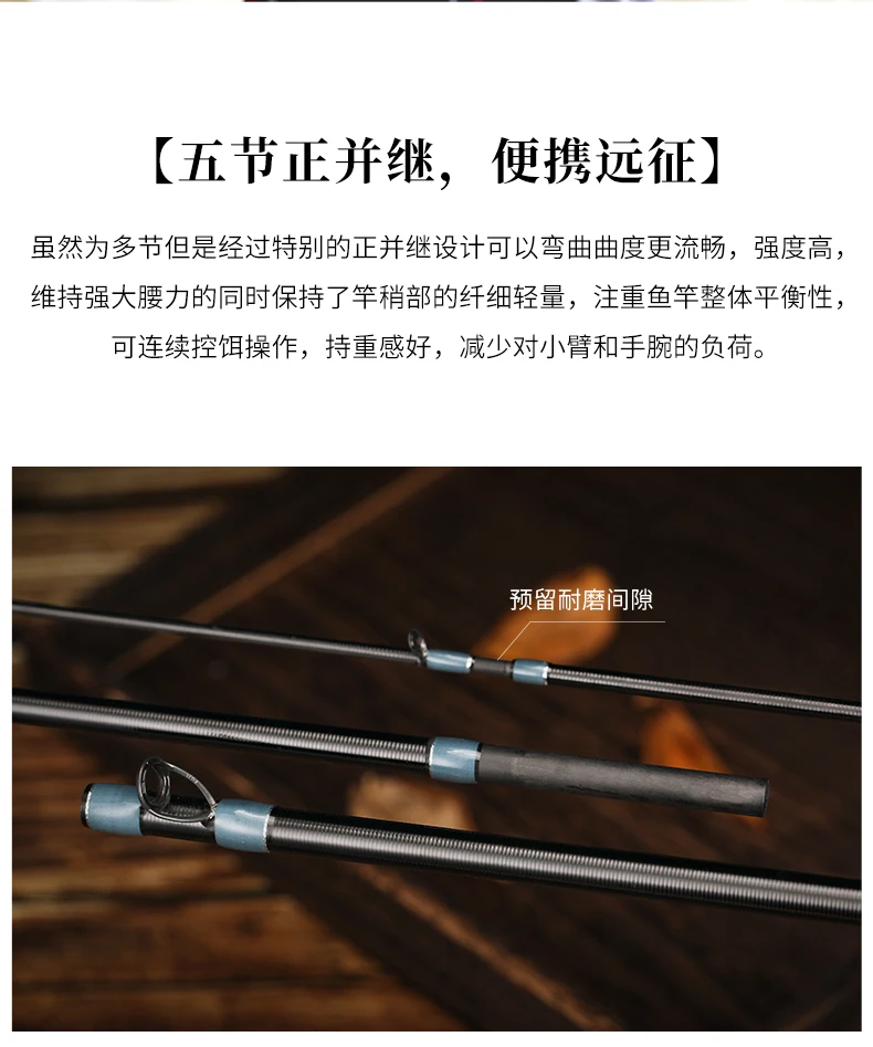 La Construcción de empalme paralelo y los espacios en blanco ligeros, fuertes y de alto rendimiento crean una hermosa curva de flexión que hace que los pescadores se olviden de las articulaciones.