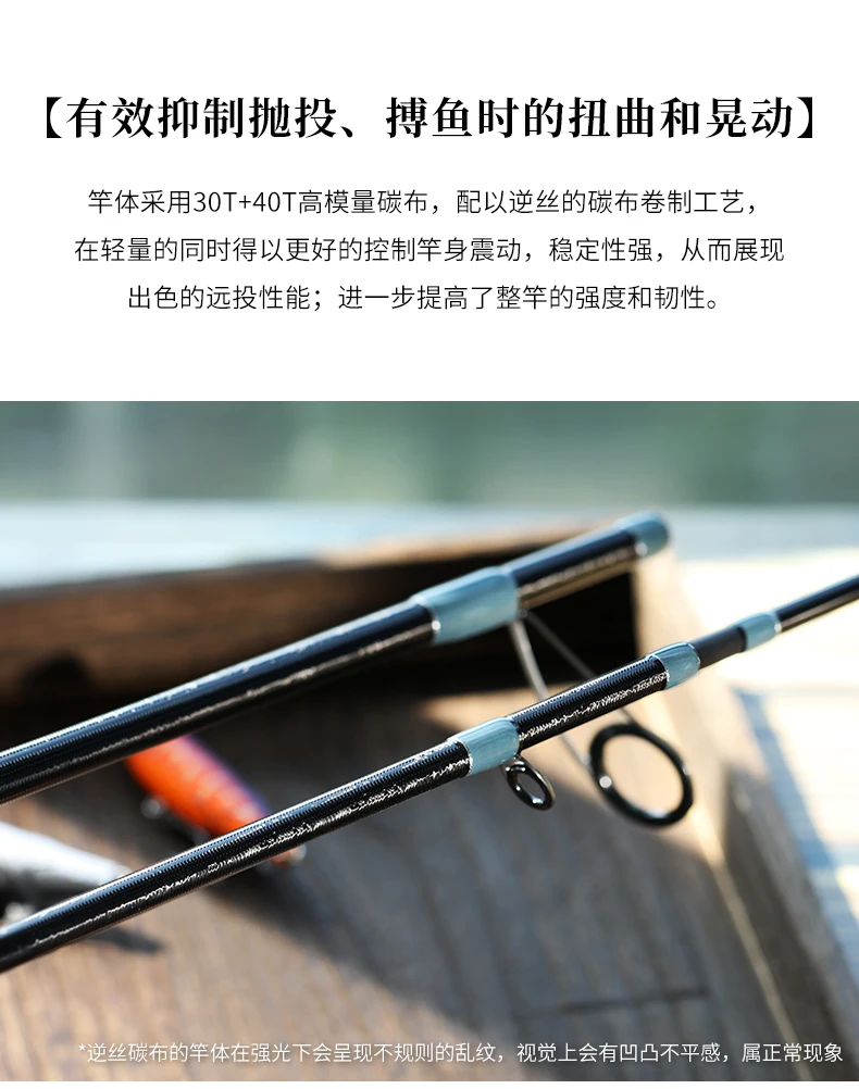 Las varillas utilizan principalmente un blanco de carbono de alto módulo 30T + 40T con un tejido cruzado especial para minimizar la pérdida de energía y lograr una buena versatilidad, distancia y precisión para un mejor manejo de territorio desconocido.