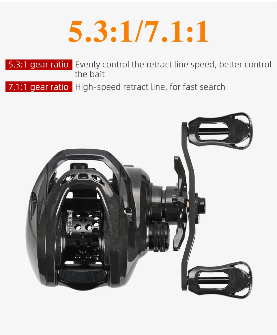 Relación de engranaje 5,3: 1/relación de engranaje 7,3: 1/rodamientos 10 + 1/4kg Drag Max / 148g peso del carrete/8,5g peso del carrete