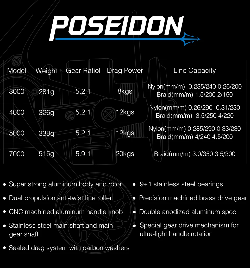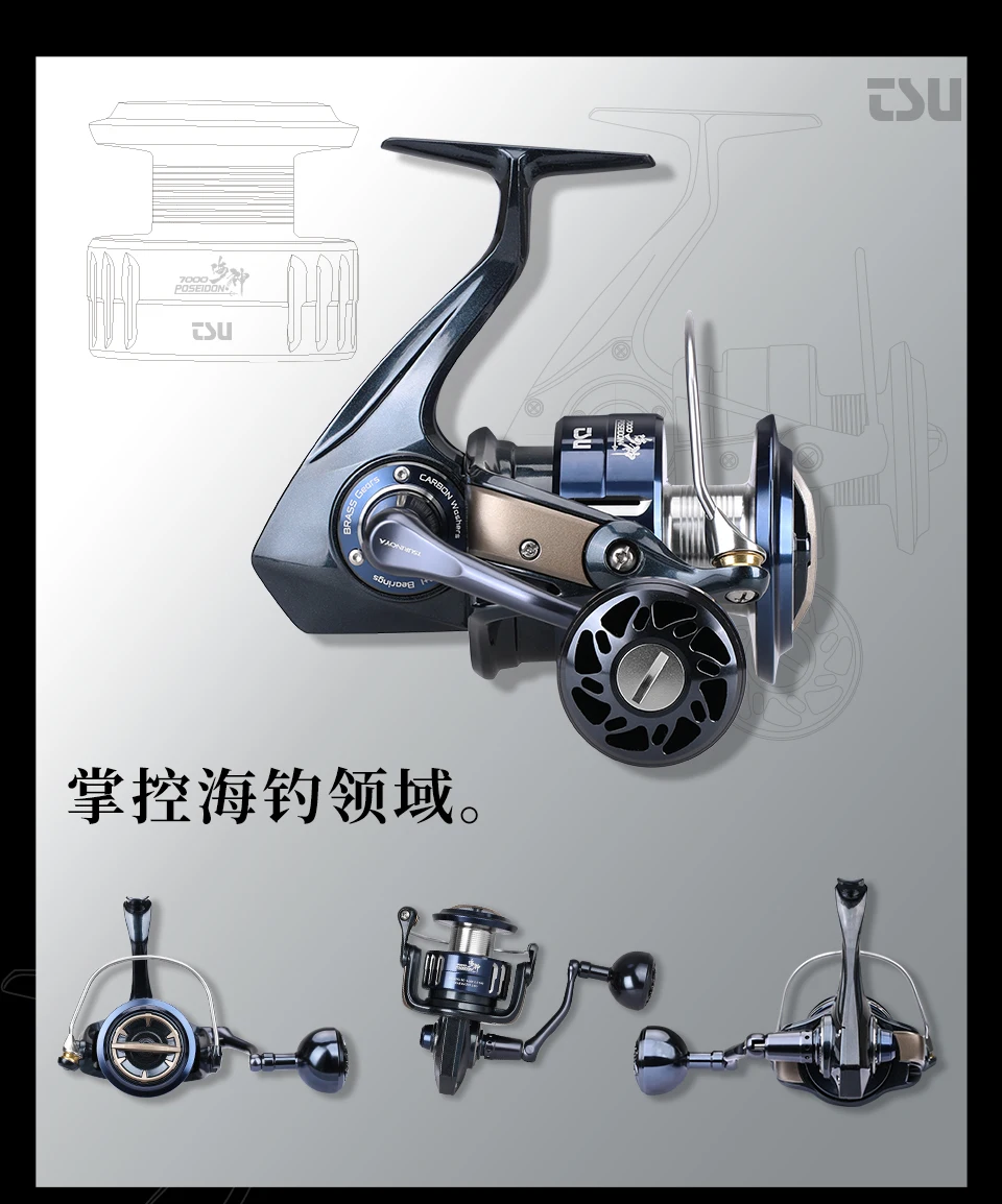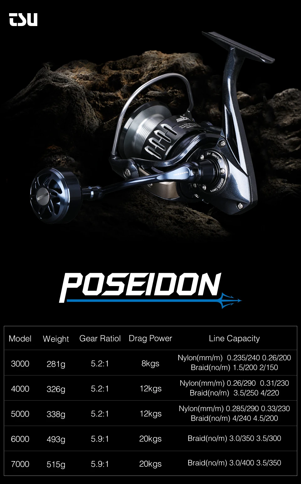 TSURINOYA Full Metal Saltwater Spinning Reel POSEIDON 3000 4000 5000 5.2:1 High Strength Max 12kg Drag Power Sea Fishing Wheel