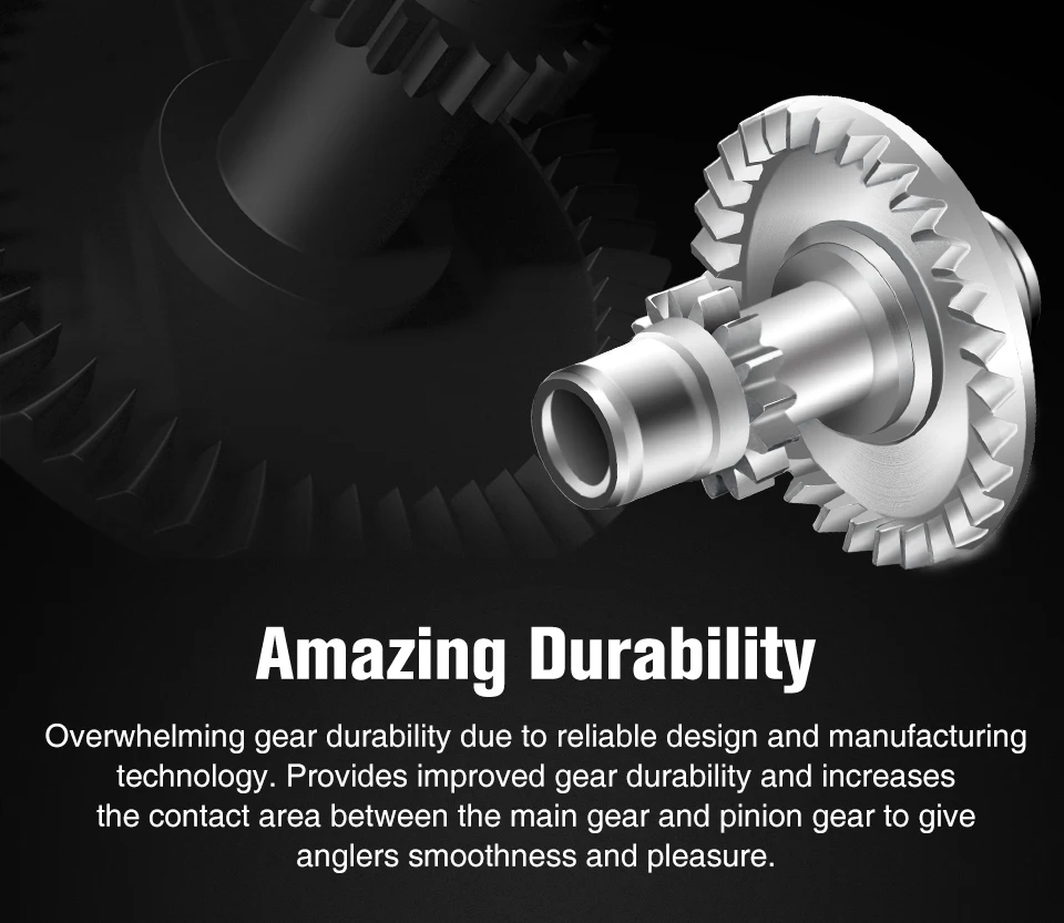 Proporciona una durabilidad mejorada del engranaje y aumenta el área de contacto entre el engranaje principal y el engranaje de piñón para brindar a los pescadores suavidad y placer.