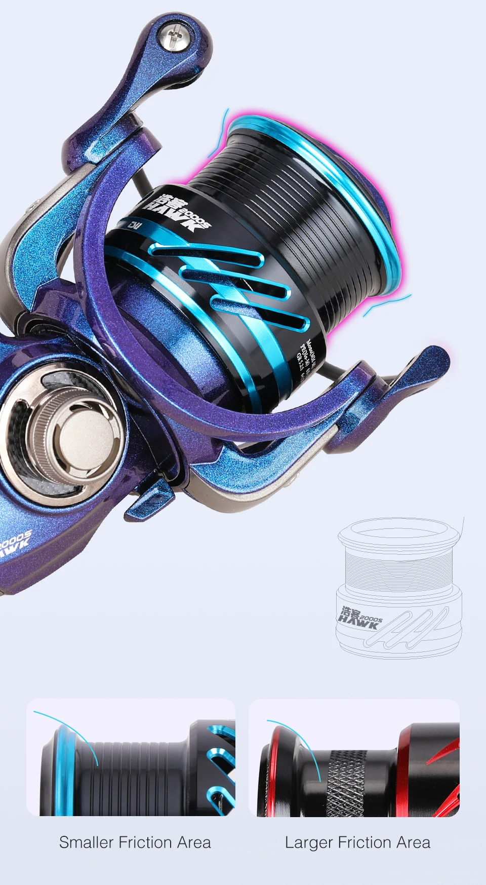 Corte en dos pasos, gran diámetro, bobina poco profunda y múltiples diseños que realmente realizaron LONG CAST.