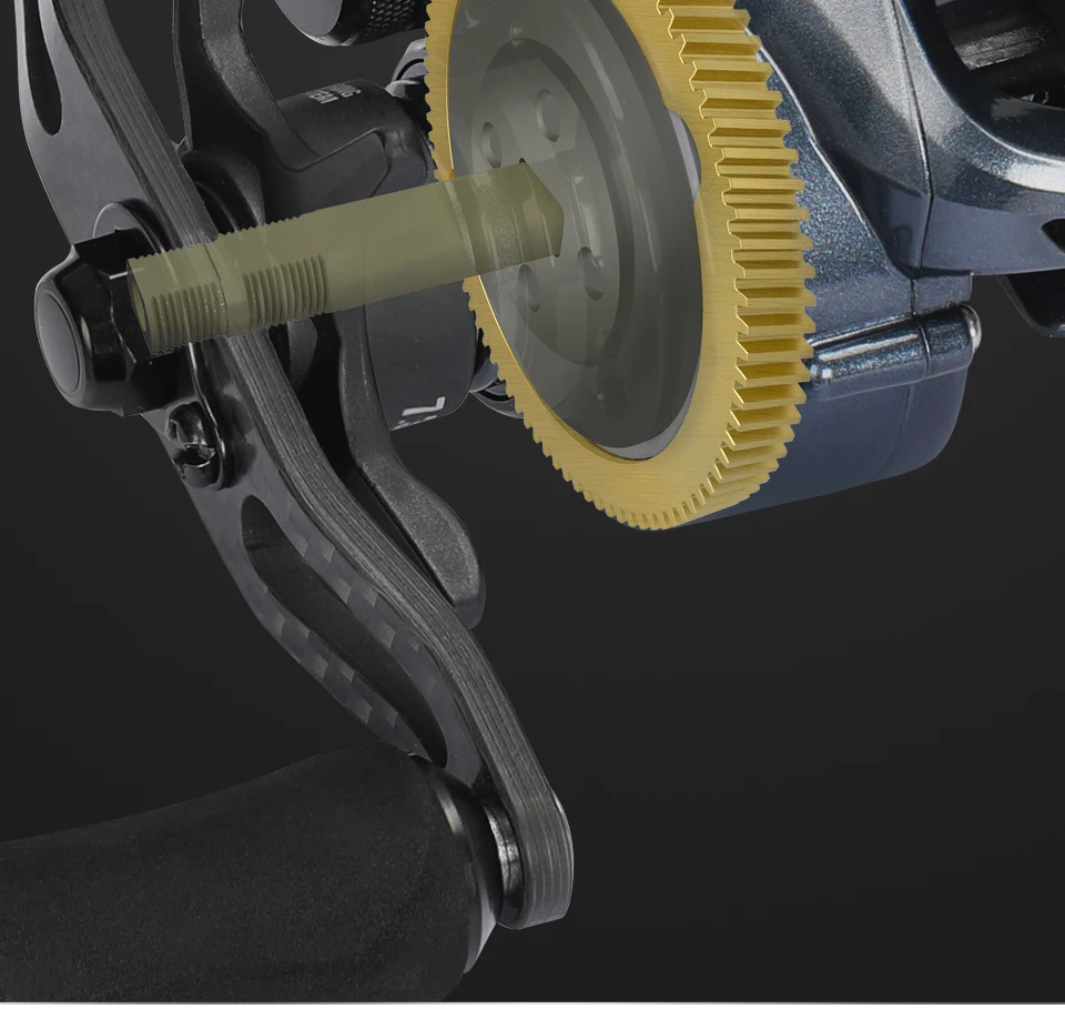 El carrete utiliza un engranaje principal de latón finamente mecanizado que garantiza una vida útil más larga, velocidades más altas y mayor resistencia.