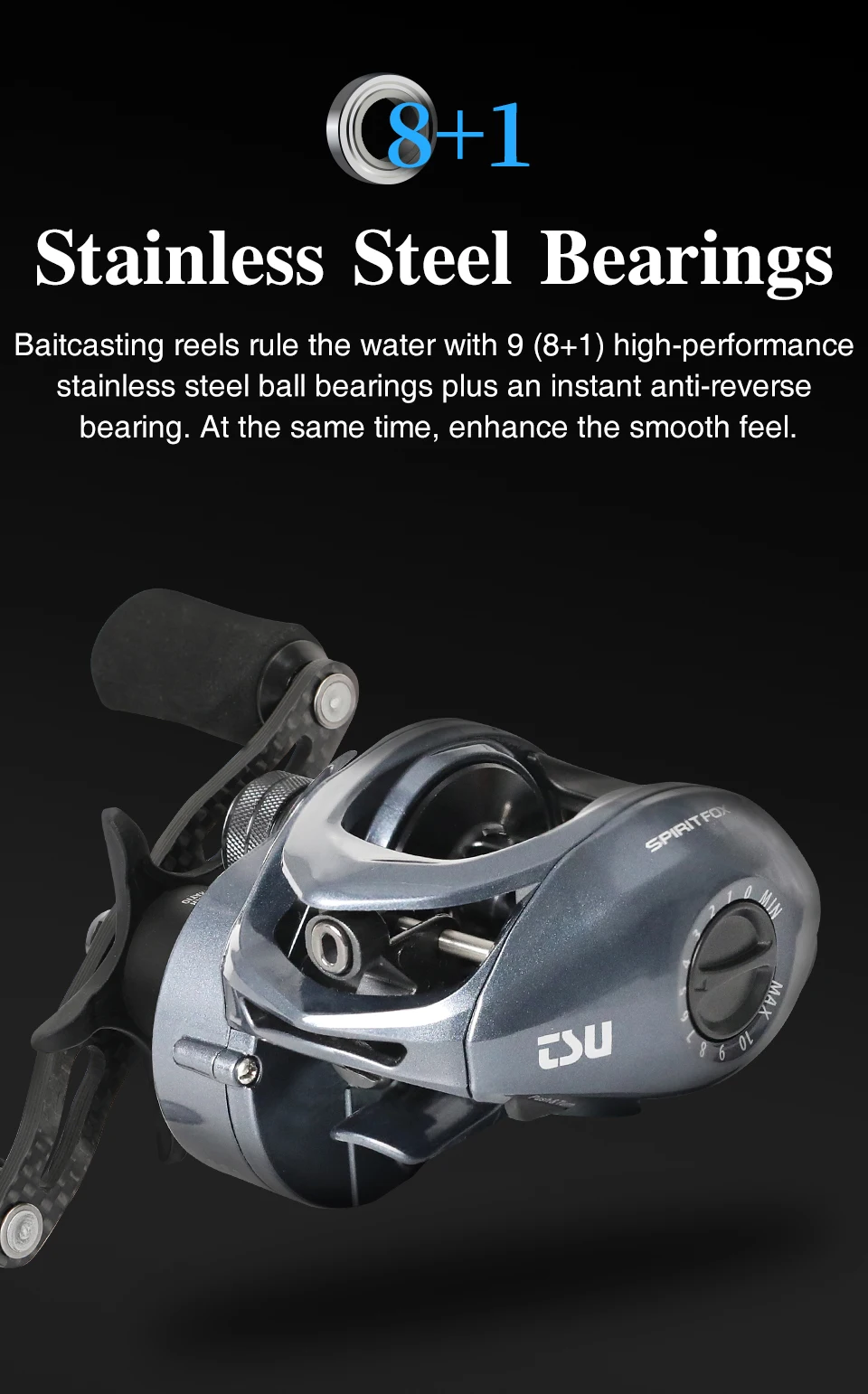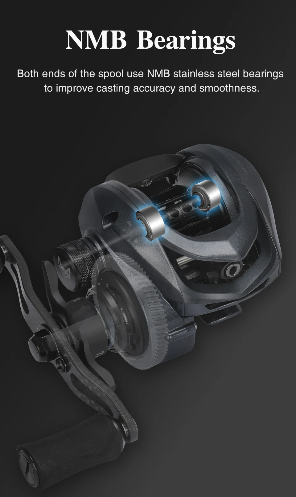 Ambos extremos del carrete utilizan rodamientos de acero inoxidable NMB para mejorar la precisión y la suavidad de la fundición.