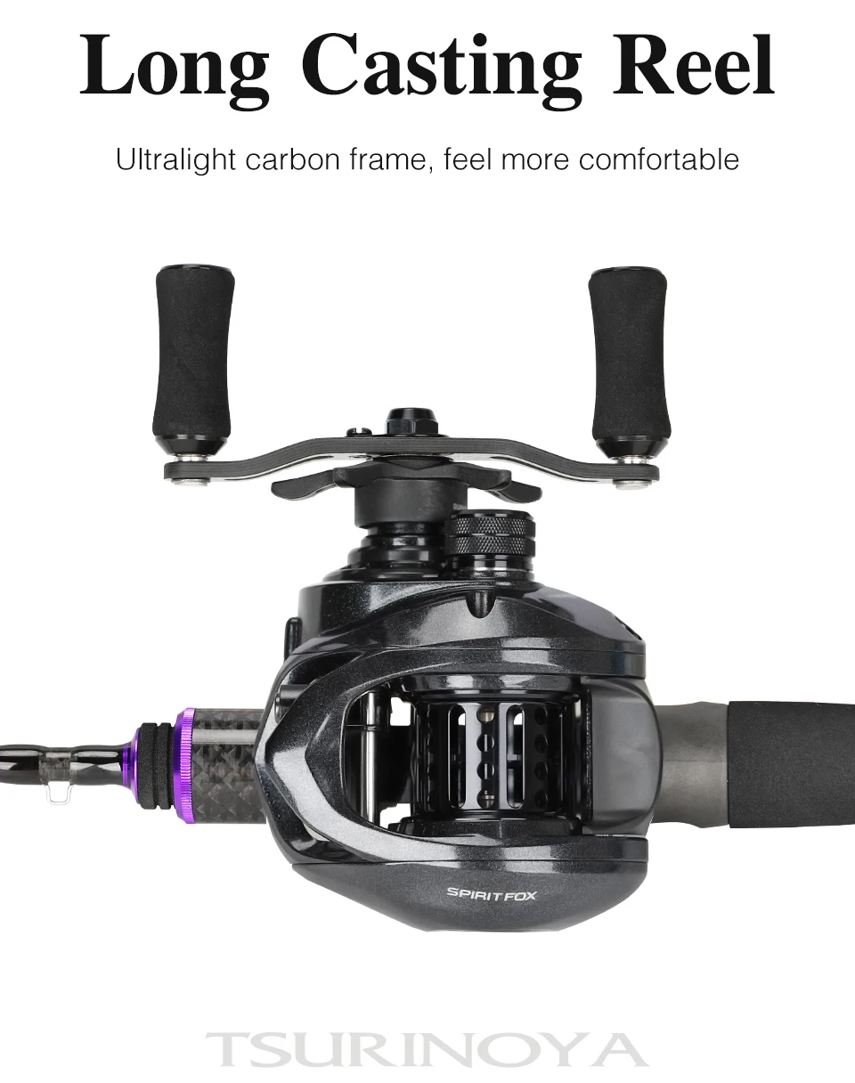 TSURINOYA SPIRIT FOX 50 Carrete de pesca Baitcasting ultraligero Engranaje de latón de fundición larga 7,3: 1 Carrete versátil ultra suave de 142g