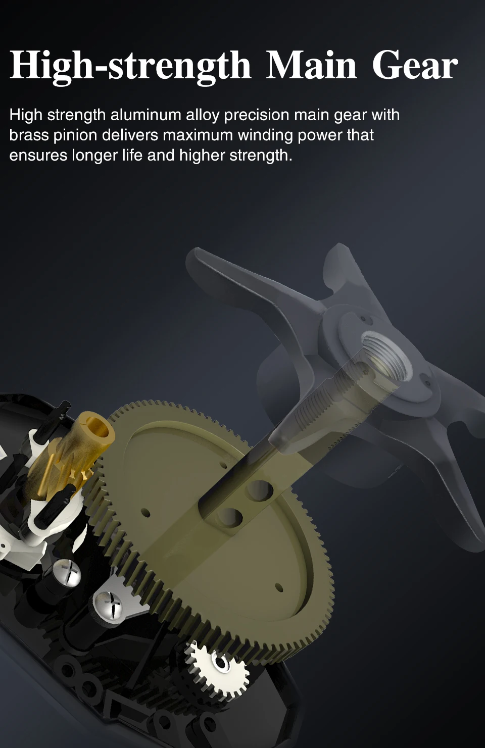 El engranaje principal de precisión de aleación de aluminio de alta resistencia con piñón de latón ofrece la máxima potencia de bobinado que garantiza una vida útil más larga y una mayor resistencia.