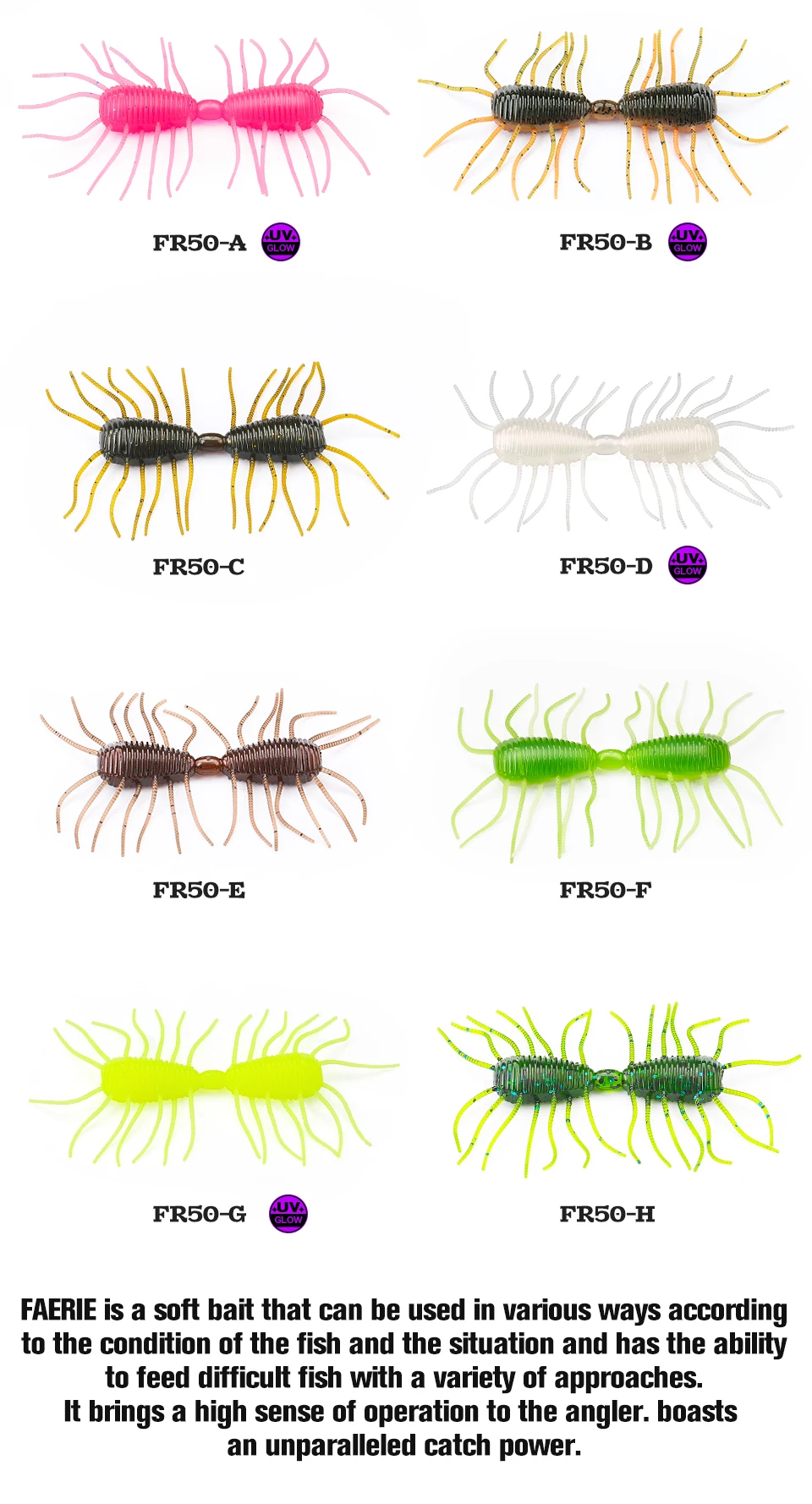 FAERIE es un cebo blando que se puede utilizar de varias maneras según el estado del pescado y la situación y tiene la capacidad de alimentar peces difíciles con una variedad de enfoques.