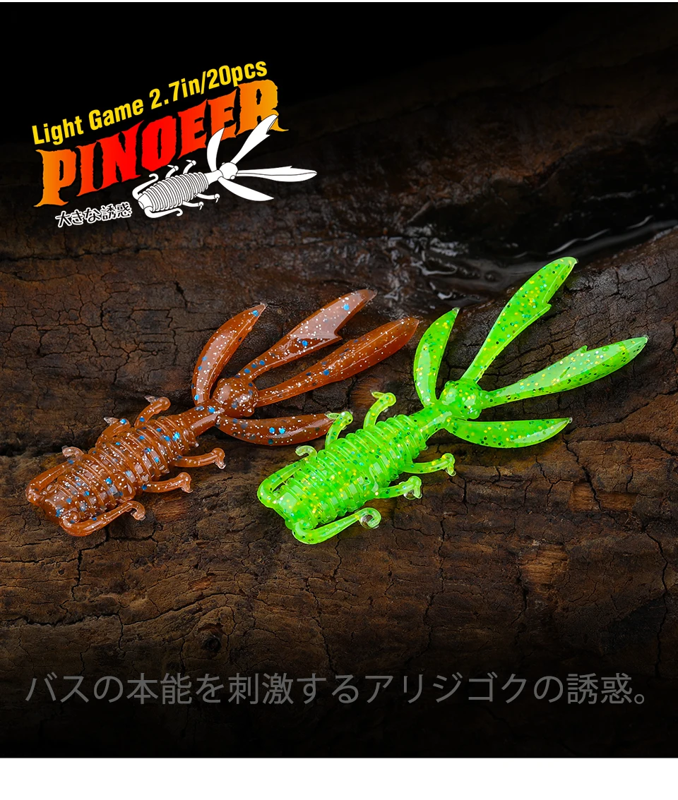 TSURINOYA 2.7in 20 unidades cebo suave Camarón PIONEER 68mm 2,4g juego ligero gusano silicona Ajing lubina versatilidad señuelo de pesca