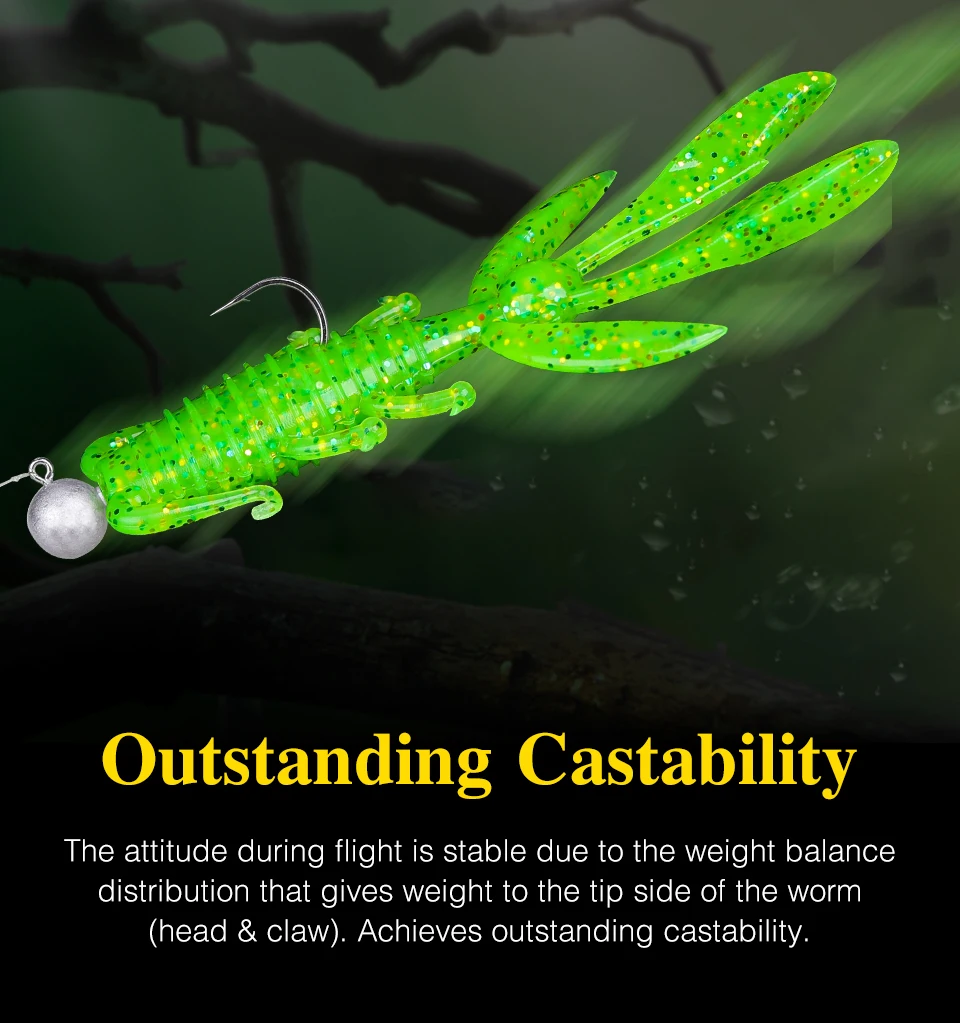 TSURINOYA PIONEER compact pero la forma del cuerpo gordo aumenta la distancia de vuelo, dos tipos de garras con diferentes formas para generar olas y corriente de agua avanzadas, el gusano favorece en gran medida el instincto de los bajos.