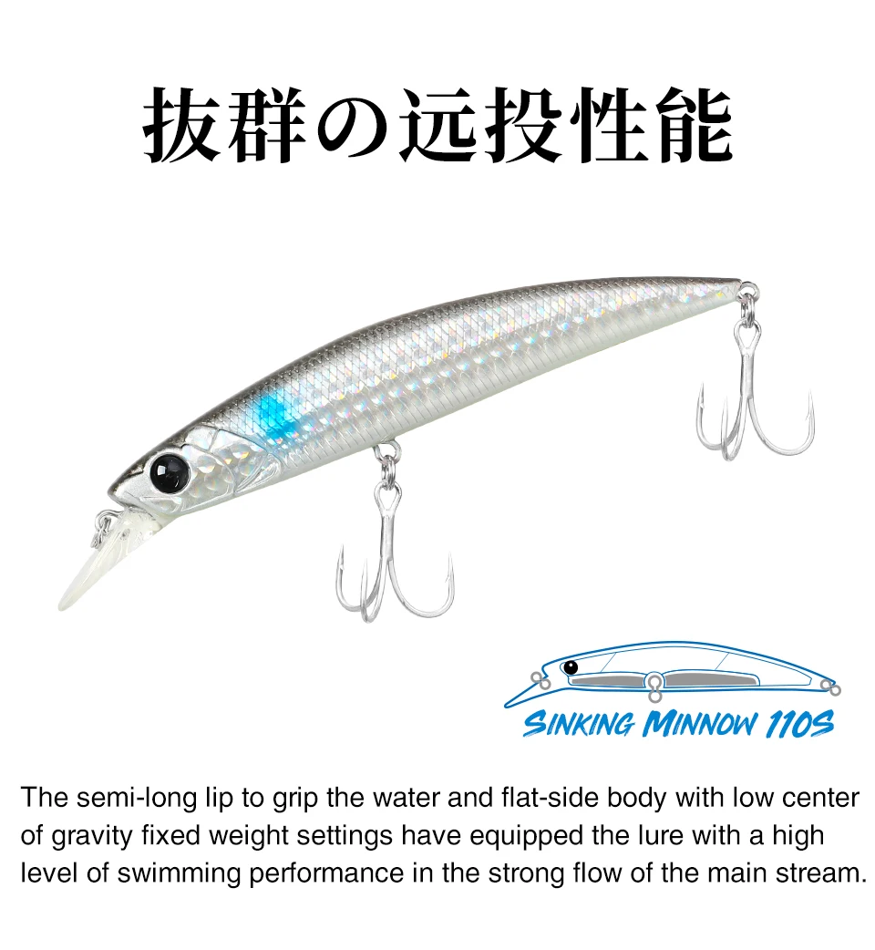 1. El cuerpo plano pero pesado crea una respuesta de acción fuerte para el pececillo pesado que se hunde. Su Iniciación de acción es rápida y es capaz de poner en escena contrapesadas continuas con el trabajo de la varilla, dentro de una distancia corta.