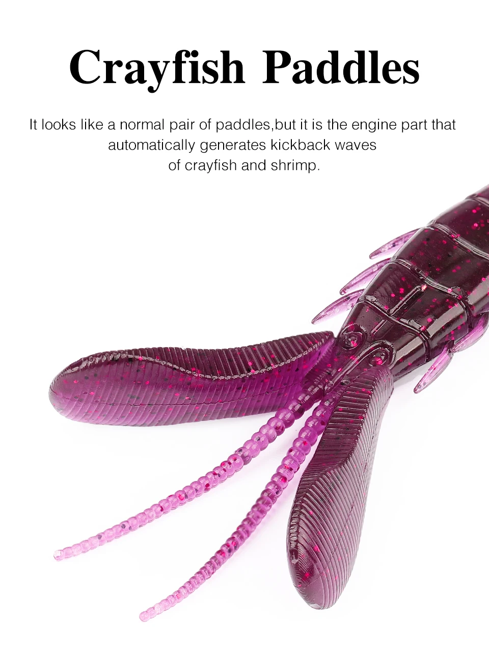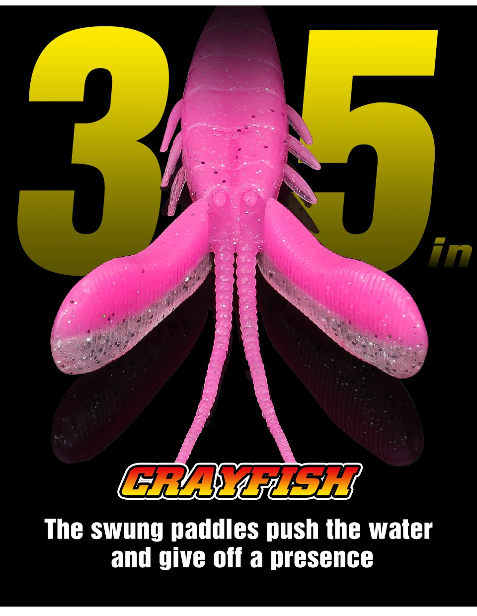 Molded with a unique claw design, the CRAYFISH features vertical paddle shaped claws that move up and down while traveling through the water, which forces the entire body to produce a waving motion like an escaping crawfish.