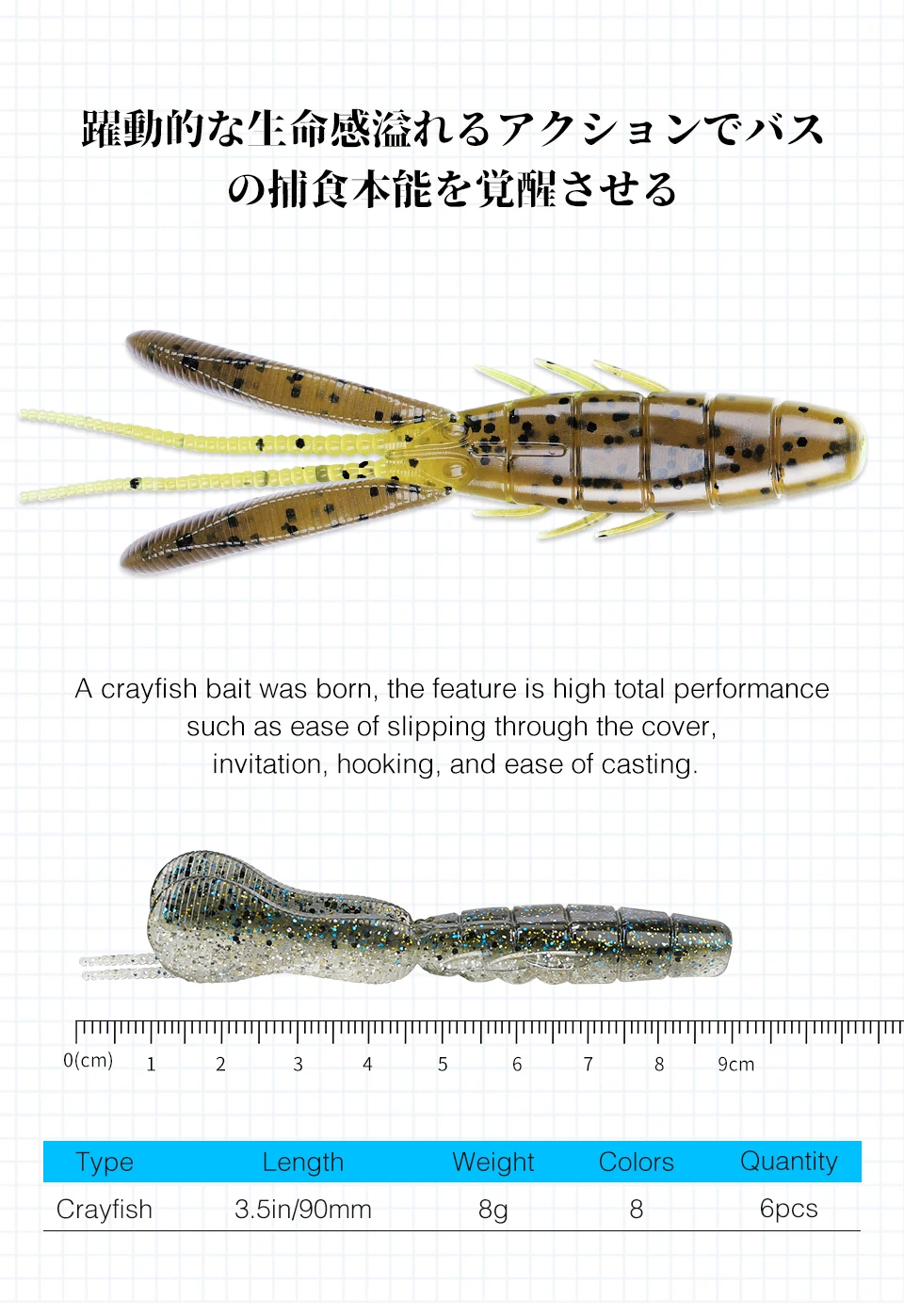To trigger even more bites and make fish hold on longer, the CRAYFISH is infused with genuine shrimp and squid powder that adds both scent and taste.