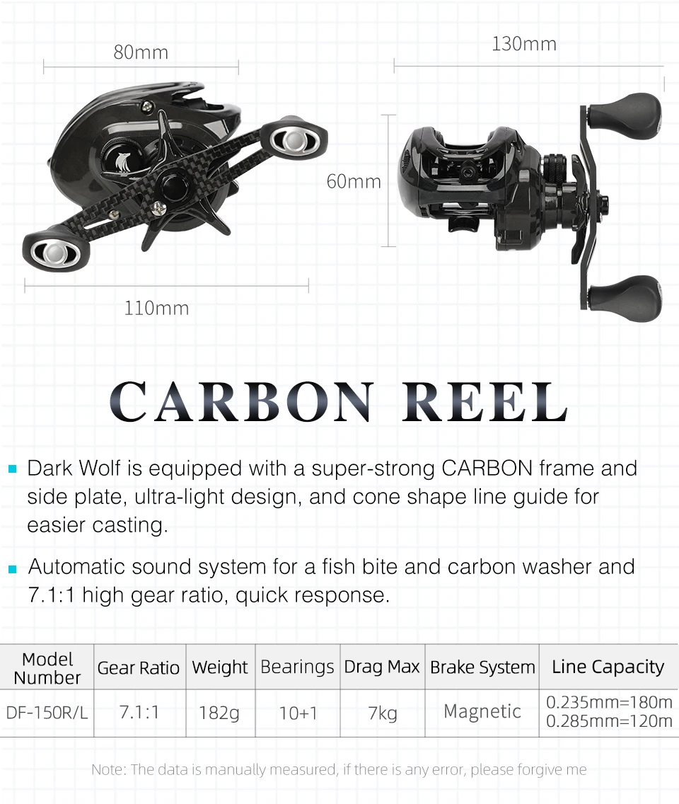 TSURINOYA DARK WOLF150 7kg Drag ultraligero Baitcasting carrete 7,1: 1 10 + 1BB freno magnético agua de mar carpa rueda de pesca de fundición larga