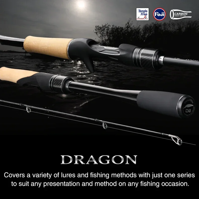 La serie DRAGON adopta un agarre monocoque de carbono que puede transmitir claramente el estado del señuelo en el agua.Permite a los pescadores manipular señuelos a voluntad.