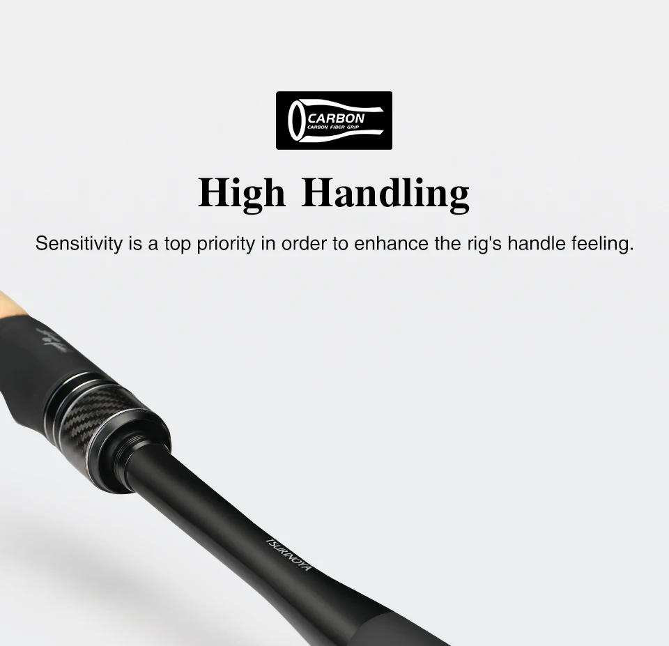 La serie DRAGON adopta un agarre monocoque de carbono que puede transmitir claramente el estado del señuelo en el agua.Permite a los pescadores manipular señuelos a voluntad.