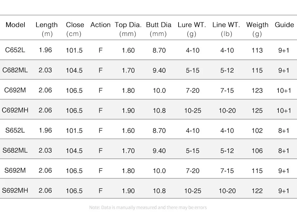 Exelente calidad, se siente más rígida que otras de su tipo entre M y MH pero no como una ML, para señuelos de profundidad media o superficiales bastante buena. lanzamiento aceptables desde 1/8oz aunque su mejor desempeño es con 1/4 o 3/8oz.