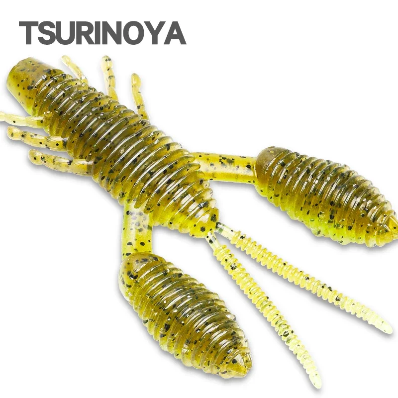 TSURINOYA fuelle garra camarón gusano PREDATOR señuelo de pesca 3,23 pulgadas 6 uds cebo suave de silicona Artificial perca de lubina sin plomo aparejo señuelo