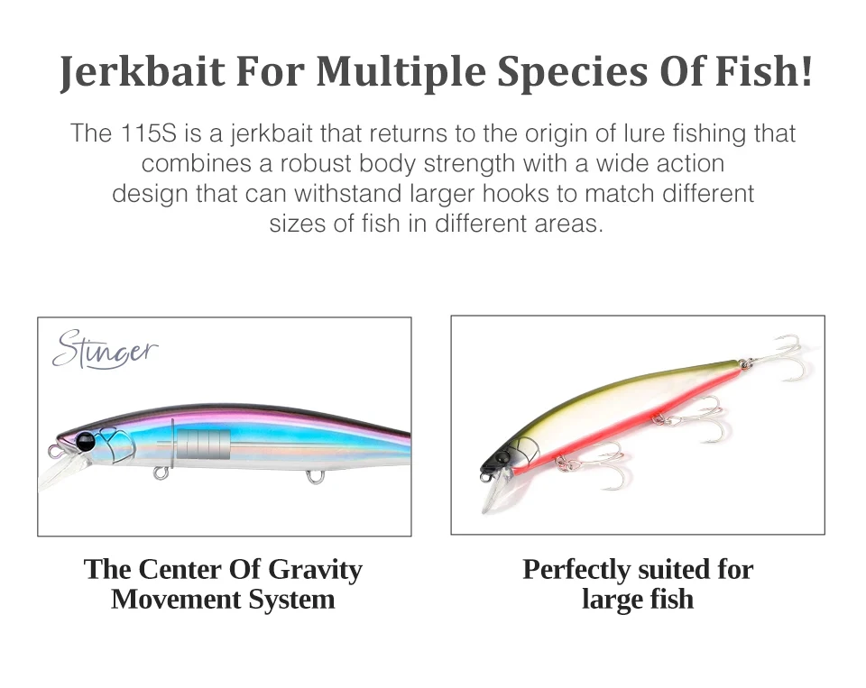 El 115S combina una fuerza corporal robusta con un diseño de amplia acción que puede soportar anzuelos más grandes para combinar diferentes tamaños de peces en diferentes áreas.