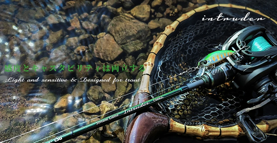 Serie INTRUDER, una varilla corta de paquete de 4 piezas, modelo fino de cebo. Adecuado para cabeceras y arroyos de montaña, disfrute de encuentros y batallas con truchas.